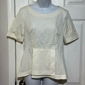 NWOT Lafayette 148 New York Cream Cuffed Sleeve Peplum Blouse Size 4