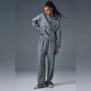 ALO YOGA | Accolade Straight Leg Sweatpant in Steel Grey.