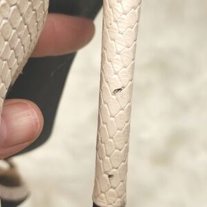 cream/bone color snakeskin genuine embossed leather. Sandal heels.