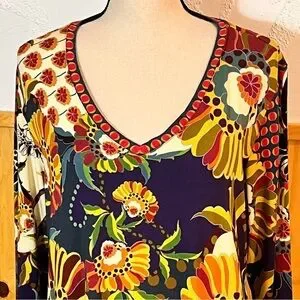 Johnny Was Janie Vibrant Floral Long Sleeve Top Sz-L
