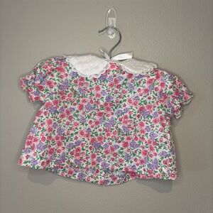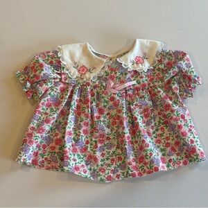 VINTAGE CRADLE TOGS BABY GIRL Floral Embroidered w/ Lace Button Down Top 6-9M