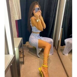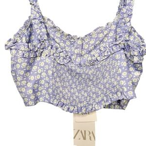 NWT Zara Purple Ditzy Floral Crop Top And Midi Slip Skirt Women’s Set Sz XS