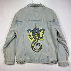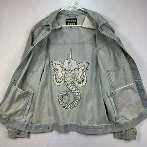 Pance News Denim Trucker Jacket Womens 3XL Light Blue Embroidered Elephant Rare