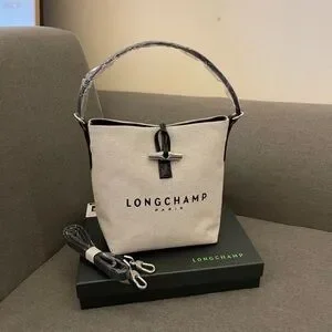 "Longchamp Essential Toile Bucket Bag New with tags ,never used The approx: L 9.5in X W 4.5in X H 8in