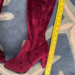 Catherine Malandrino Over The Knee Velvet Boots Burgundy Tie Back Heeled 7.5