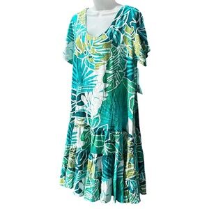 JAMS WORLD Women Size L Garden Isle Tropical Multi Green Hattie Tiered Dress.