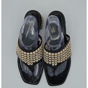 Tory Burch Woven Raffia Block Heeled Mule Sz 10.5 Black Raffia Sandal Slip-On