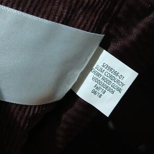 Banana Republic, slim fit. Elevate your style with these deep burgundy corduroy pants. Ideal for versatile wear. men's sz 34 x 32 slim, sits below the waist, slim through the thigh, slim leg opening. New w Tag