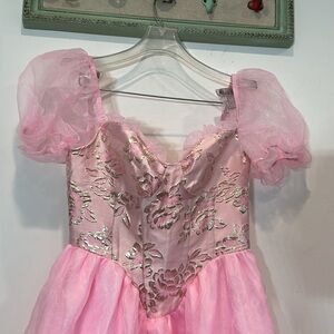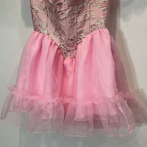 Brand New regal brocade metallic a line mini dress tea party pink gold medium