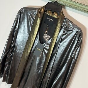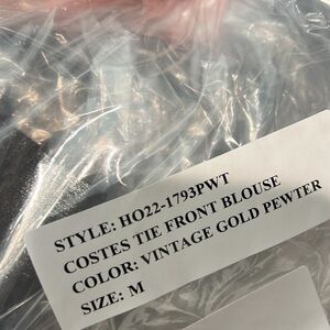 Le Superbe Vintage Gold Pewter Costes Tie Front Blouse medium new with tags med