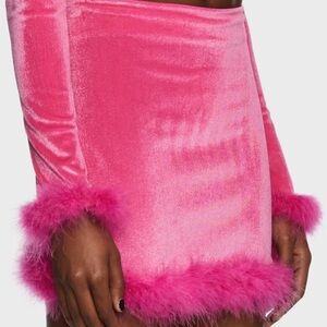 Sugar Thrillz dolls faux fur hem velvet mini skirt Barbiecore pink sz large new