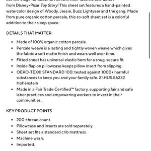 Toy Story themed bedding sheets. Features beloved characters. Vibrant and playful design. Pottery barn kids 2 available organic cotton full queen sheets