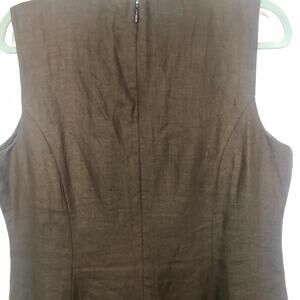 Talbots Brown All Linen Sheath Lined Cream Colored Embroidery Beading
