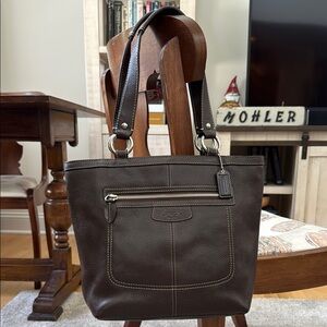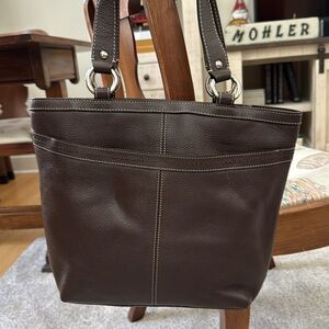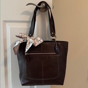 Coach Penelope dark brown leather shoulder bag with scarf, EUC