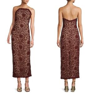 Antonio Melani Women's Size 0 Zifandel Nancy Schiffli Lace Sheath Dress, Shell - 100% Polyester, Lined - 88% Polyester 12% Elastane, Hidden Back Zipper, No Pockets, Back Slit, Light Stretch, Adjustable Spaghetti Straps