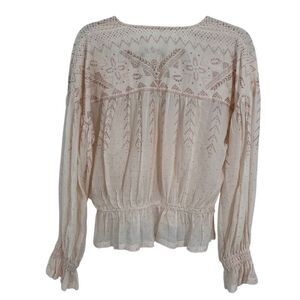 Free People Snowy Sand Metallic Crossover Front Long Sleeve Blouse Cream Size XS