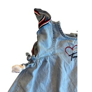 Tommy Hilfiger Chambray Dress 24M Hearts Ruffle Sleeves Red White Blue