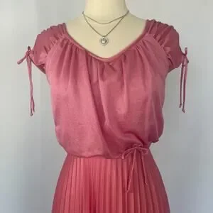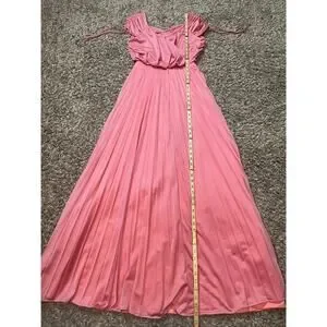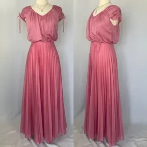 Vintage Formal Dress Size Small Pink Accordion Pleated Maxi Prom Bridesmaid 80s
