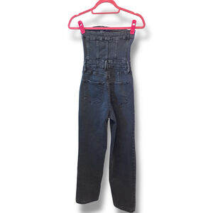 Made from light compression denim, this jumpsuit offers stretch and a soft, washed finish. It zips from the fly through to the strapless neckline for a snug tube-top fit.
