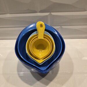 Williams Sonoma 3-pc Set of Melamine Blue Mixing Bowls & Yellow Measuringspoons