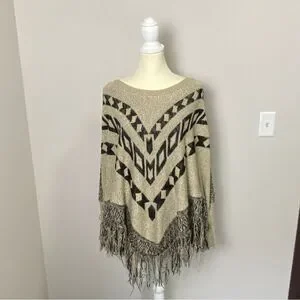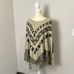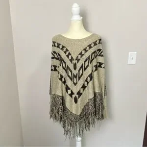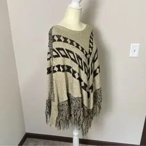 Maurices Boho Southwestern Knit Pancho Shawl W/ Fringe Sweater Women's Size L/XL