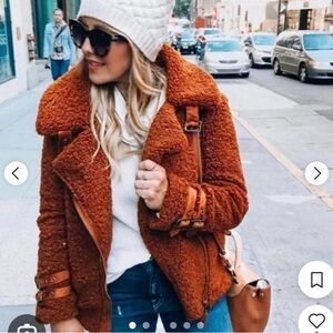 Anthropologie Marrakech sherpa teddy moto jacket rust /bronze color small