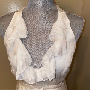 White Ruffled Halter Sundress Crepe Casual Dress.
