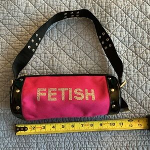 FETISH Vintage Y2K Hot Pink and Black Women's Bag with Rhinestones and Studs