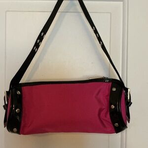 Stylish and bold, this bag features a vibrant pink body with sleek black accents. Perfect for adding a pop of color to any outfit.