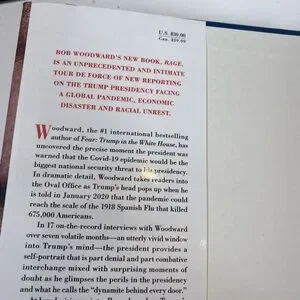 Rage by Bob Woodward hardcover. Brand new only defect is a small sticker on the back which is pictured. Details Trump presidency. Great read before the election!