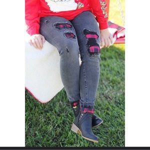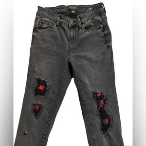 Judy Blue Skinny Jeans distressed Size 1/25 Buffalo Plaid Cuffs And Patches