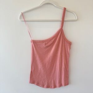 Asymmetrical tank by Free People (“We The Free”) in a pretty pink salmon-colored hue. One-shoulder design. Lightweight slub knit.