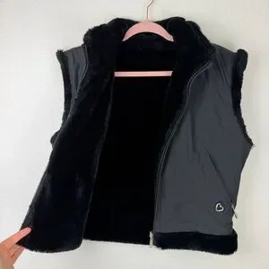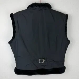 The perfect cropped vest to wear to the mountains, for your après-ski look, on a hike, or out and about. Fuzzy faux fur lined, adjustable belted back, and two pockets.