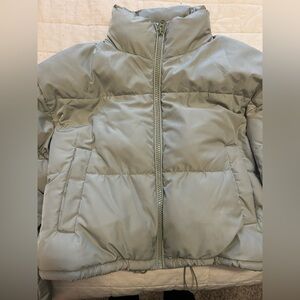 Stylish puffer jacket. Features a high collar. Full front zipper. Perfect for cold weather.