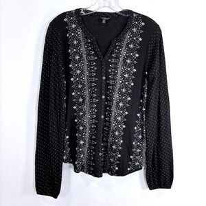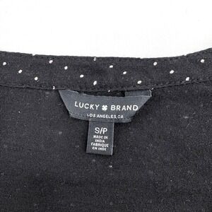 Lucky Brand Womens Black Embroidered Polka Dot Button Front Top Small Boho