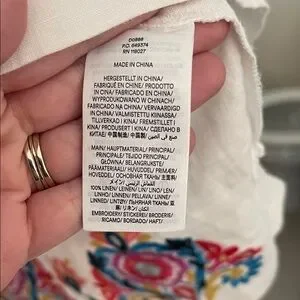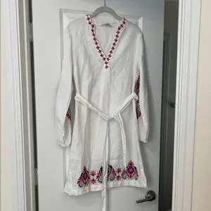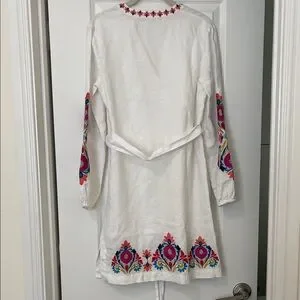 EUC! Boden White Linen Dress with Colorful Embroidery, Size 4R