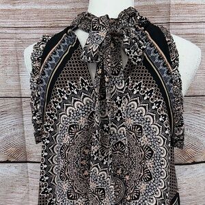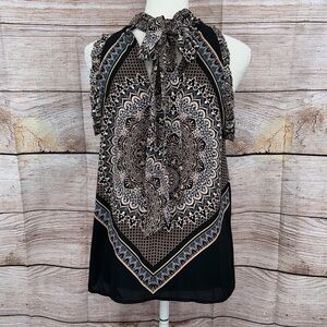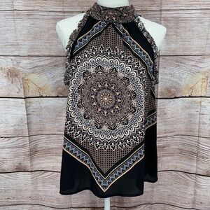 1. State Black and Cream Medallion Patterned Halter Blouse Size M