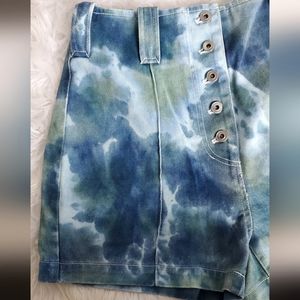 3.1 Phillip Lim High Waist Denim Tie Dye Shorts, Size 2