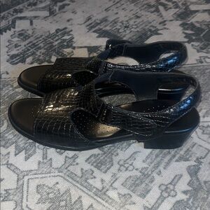 SAS women’s Suntimer Comfort Heeled Sandal in black croc size 9