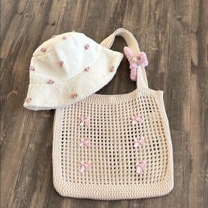 🎀💈🎀NEW! Knit Tote < Bucket Hat >Hair Claw 3PC Bundle🎀💈🎀