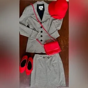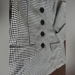 Classic black and white houndstooth blazer with a structured, tailored fit. Fully lined, button-front, and beautifully made in the USA. Timeless piece that works for workwear or dressed down with jeans.