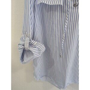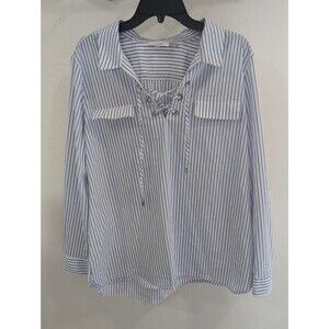 Calvin Klein Blue & White Striped Lace-Up V-Neck Long Sleeve Blouse XL