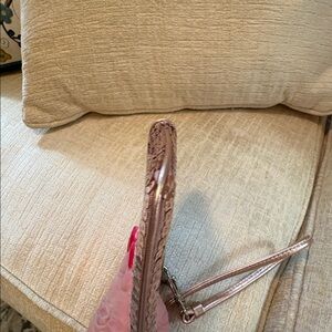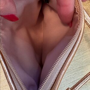 Elegant Coach tag in metallic pink. Features a sleek design. Beautiful sequin wristlet/clutch.
