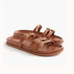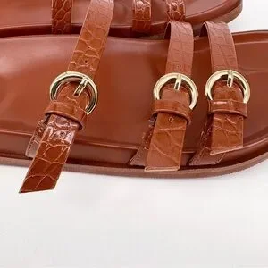 J.CREW 3-Strap Brown Faux Crocodile Slide Sandals 8