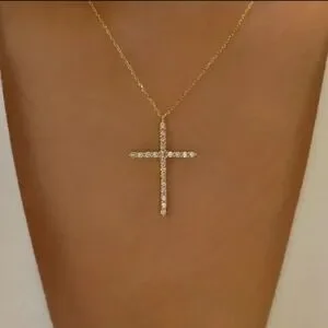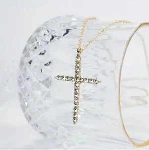 Golden Rhinestone Cross Clavicle Chain Light Luxury Crystal Necklace Charm Jewelry. high quality material made. * fast shiping