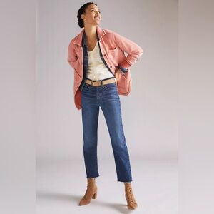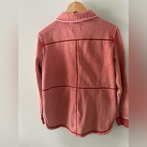 Chic coral fleece jacket with button front from Anthropologie. Features chest and side pockets. Perfect for layering and for in between seasons. Size small but is oversized and has lots of stretch so can be worn by size medium or large.