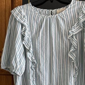 Universal Thread Casual Striped Short Baloon Sleeve Cotton Top with Ruffles