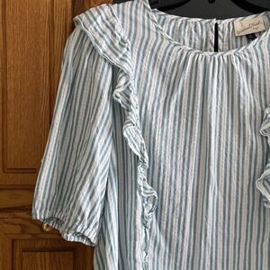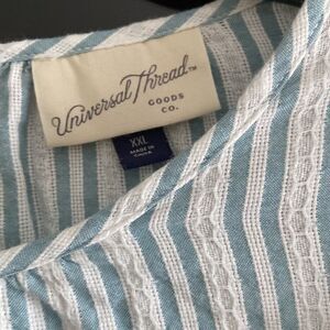 Universal Thread Casual Striped Short Baloon Sleeve Cotton Top with Ruffles. Size: XXL. Excellent used condition. Worn twice and washed. 100% cotton. Measurements approximately while laying flat: Armpit to armpit: 23”. Length: 26.5”. Short sleeve: 13.5”. Reasonable offers welcome. Smoke free and pet free home.