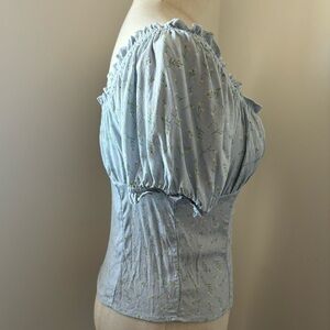 Elodie Light Blue w/ Delicate Floral Print Short Puff Sleeve Bodice Style Top
