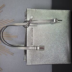 Stylish Marc Jacobs tote in metallic silver. Lock and key charm fashioned on silver coated leather. NWOT - never used, smoke free home.